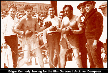 Was Edgar Kennedy a Keystone Kop for Mack Sennett? Yes. There were many variations that told of the colorful way Edgar fought his way into the movie business. According to the unnamed publicity writer, Edgar started in the movies after serving in the World War. Well, the Armistice was in 1918 and Edgar was already a seven-year veteran of the movies by then. Did Edgar fight Jack Dempsey? Sort of. Did Edgar really invent the "slow-burn" out of exasperation when he was turned down by the "boys at the casting department?" Poppycock.