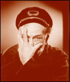 Ed-Grrrr Kennedy became known as the movie's maddest man, with a TNT temper. He usually harnessed it at the conclusion of the comedy by bringing his meaty left hand to his head, then deliberately dragged it s-l-o-w-l-y downward over his face like a window shade. The "Slow-Burn" gesture became a symbolic white flag of defeat. He was a master at it.